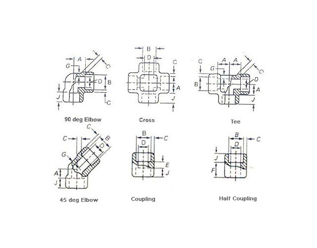 | DIMENSIONS OF SOCKET-WELD FITTINGS (ANSI B 16.11) (in mm) | ||||||||||||||||||||||